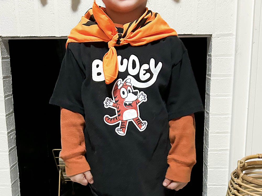 Idea: head to your local Clothes Mentor or thrift shop and either get secondhand Bengals gear OR, if you are able, get a basic tee or top to create your own custom Cincinnati/Bengals gear with a Cricut machine.